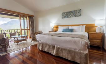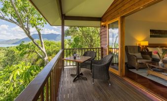 We stayed in a Eucalyptus Bungalow which was spacious and well appointed. Comfortable bed and comfortable seating area both inside and on the secluded balcony. We felt perched in the trees and could hear the waves of the beach below. The main complex has friendly staff who were more than helpful with all requests. We enjoyed afternoon drinks in the bar and lounge area and breakfasts and dinner in the restaurant. Both are open air with views either along the coast to the Daintree or down the coast towards Cairns. Good menu choices and a limited but ample wine list. We had great conversations with the friendly barman and waiting staff. We had a lovely stay and enjoyed the nature walks, the bird watching tour, and learnt more than I thought was possible about coconuts!