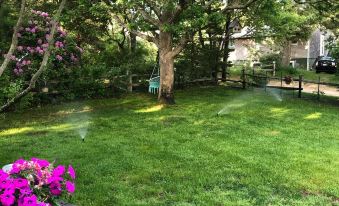 Beautifully decorated ranch style home in Oak Bluffs Center. Close to the beach, restaurants, shopping, parks, library and downtown Oak Bluffs. There is a huge front yard to enjoy playing ball, swinging in the tree, catching sun or just listening to the birds. There is also a lovely large back deck with an outdoor shower, fire-pit for s'mores, and furniture for good conversation with your favorite cup of coffee / glass of wine!About pets:No pets allowed.No pets allowed at the home..About checkOut:Check out before 11:00 AM.About children:Children allowed: ages 0-17.About checkIn:Check in after 4:00 PM.About smoking:Smoking is not permitted.No smoking allowed at the home..About minBookingAge:Minimum age to rent: 21.About events:No events allowed.No parties allowed at the home..