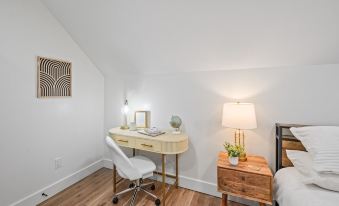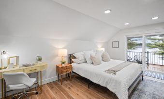 Going up the second set of stairs brings you into a spacious nook with 2 chairs to relax and decompress. There are 2 primary sweets. The first has a queen bed with a separate sitting area. The second sweet has a king bed, couch and desk. Also has a balcony overlooking the lake perfect for morning coffee and excellent sunset views with a glass of wine! Upstairs also has a full sized washer and dryer along with a half bath.