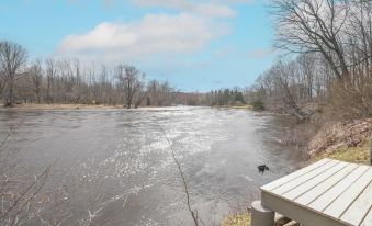 Welcome to our River Retreat! Nestled between Big Rapids and Cadillac, you will be sure to appreciate the calming effects of the Muskegon River. This home is ideal for families with a bunkbed with trundle for kids, and 2 other bedrooms with queen and king sized bed respectively. You will enjoy the sunlight from the living room, where you can play board games or work on puzzles. There is excellent WiFi, a smart TV and a fully stocked kitchen. There is abundant seating options outdoors, including a patio table and a Blackstone BBQ. There are many lawn games available to play on the large flat yard, and plenty of parking space. The garage has been transformed into a rec room, complete with foosball table and dart board. Enjoy making smores in the evening and sit around the firepit!