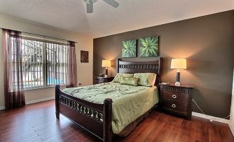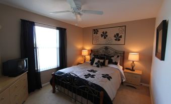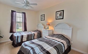 Situated within the gated community of Gleneagles at Remington this 4 bedroom 2 bathroom is a fantastic vacation 'home from home' the owners have gone to great lengths to insure your stay be as carefree as possible. The ground floor of the property consists of living room, dining room, family room, breakfast nook and kitchen that is overstocked with all the equipment for large family vacation. Master bedroom with large en-suite that includes his and her vanity, garden tub, tiled shower, two large closets and separate toilet. From the breakfast nook large sliding doors lead out into the lanai (shaded area) ideal for those Florida breakfasts offering a welcome shaded area to relax while watching the children play in the extended pool that over looks the lake.