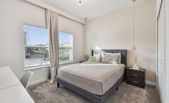 One Queen bedroom is located downstairs - Queen size bed, SMART TV, sharing full bathroom.