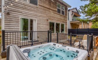 You’ll love gathering on the plush sectional in front of the stacked-rock fireplace and above-fire TV in the living room, with its large windows to the forest. Dining is a cinch from the newly updated kitchen, with its quartz counters, breakfast bar, stainless appliances, and smart galley layout. A large dining table seats eight, and there’s another dining table on the back patio near the bubbling hot tub. You can walk to the Pelican Pub or the upscale Meridian Restaurant past Pacific City’s new skate park, or walk straight west to the ocean and make your way there via the beach.