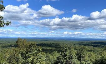 The cabin is perched on a cliff that overlooks the beautiful Hudson Valley. From the porch and yard you can see clear across the Hudson Valley to the Berkshires. The cabin is clean and in great shape, but you will be glamping. The cabin has no running water, therefore it has an outhouse, outdoor solar shower bags, and water storage containers for washing dishes. The cabin has electricity and there is air conditioning, a mini-fridge, Cable TV, DVD player, and primo hot and cold water dispenser. The cabin has a one-room open floor plan with a queen size bed, couch, 2 Coleman camping cots, and dining table.