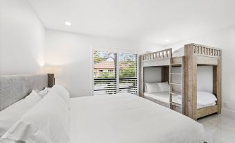 Bedroom 2 has 1 King bed and 2 Double beds (1 Restoration Hardware double bunk).