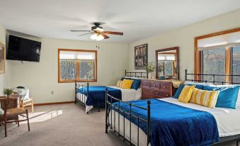4 bedrooms: 4 single beds 4 queen beds and 1 king bed