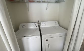The townhouse is equipped with all the amenities you need for a comfortable stay, including free Wi-Fi, TVs, a washer and dryer, and a dishwasher. There is also a private patio with a barbecue grill, perfect for enjoying a relaxing meal outdoors.