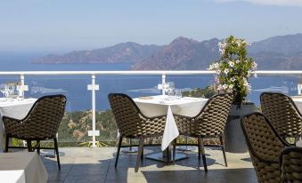 We were walking around and whilst we did not stay at this hotel, we decided to stay for their breakfast, looking at the breathtaking view of Piana's Calanques. We had zero issue with facilitating breakfast for 2 as non-hotel guests, 20 Euros/person but after looking at their buffet, we decided it was worth it. We were not disappointed. Amazing view, tablecloth tables, proper chinaware and glassware and most of all a high quality buffet. From the Juices, to the Croissants, the bread, cold cuts, proper cheese, nuts, seeds, yoghurt... we found everything to be tasty and up to par with the price they charged. Only downside was the eggs. They may have been sitting too long in the chafing-dish because they were overcooked and turned green-ish. Service was inexistant. Do not look for helpful staff here, none of the empty tables around us were cleared, our table was never cleared of empty plates throughout our hour-long breakfast experience. Is it worth it? 100%. Despite the inattentive/inexistent service, the food is great and the view makes it worth every penny.