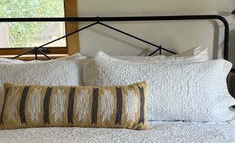 The bed was comfortable, and the atmosphere conducive to rest and relaxation. Ultimate ZEN. We thoroughly enjoyed porch sitting while marinating, luxuriously in the Mountain Views (out-door rocking chairs, macramé hanging seat, lawn chairs around a fire pit…).