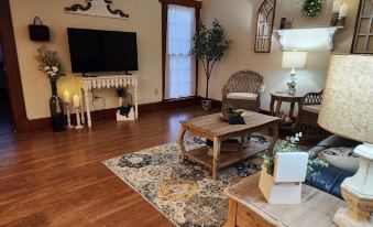 Welcome to The Country Garden Suite, located in the rolling hills of central Ohio. This suite sits on 42 acres of farmland evoking a sense of peace and tranquility. We are conveniently located 3 miles from Gambier and Kenyon College, and Mt. Vernon and the Nazarene University. This is a very spacious, one bedroom unit with a fully equipped kitchen, a 50-inch QLED TV and a walk out back porch. The cozy bedroom features a queen size bed with 100% cotton sheets, dressers to store belongings, and a large walk-in closet for additional items or hanging clothes. The roomy bathroom is handicapped accessible with a seated shower, handrails, and is stocked with R & R Essentials toiletries. The living room, with a comfy leather, power reclining sofa, and two wicker chairs, will make you feel right at home.
