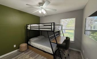 3 bedrooms: 1 bunk bed 1 queen bed and 1 king bed