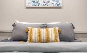 The house has been equipped with memory foam mattresses with fresh sheets and soft linens to keep you warm and cozy. A comfortable desk and dinning area for working and enjoying meals and a couch and smart tv for relaxing and kicking back.