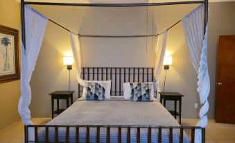 The bathroom has a spacious walk-in shower, the queen bedroom has a view of the ocean and there is a lovely four poster bed in the master bedroom. There is a terrific breeze coming off the ocean almost year-round.