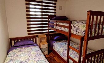 3 bedrooms: 1 bunk bed 2 single beds and 1 queen bed
