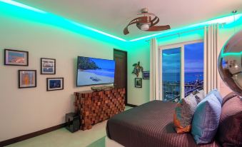 Estrella Azul is a luxurious condo located in the hills of the West Coast, where mesmerizing blue ocean meets the vibrant city life. This opulent space offers an elegant and spacious living area complete with state-of-the-art technology, where you can enjoy breathtaking views of the surrounding hills and ocean. The windows let in natural light, and the private balcony is the perfect spot to enjoy the sunset, evening fireworks, or a morning coffee.