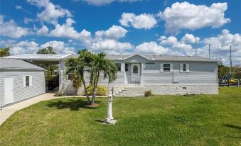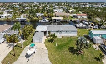 2 bath, home with a massive side porch area. Just a 10-12 minute ride with your sail or powerboat to Charlotte Harbor. The home enjoys canal views of 100 feet on the water, an open-style floor plan, warm colors, and a nice combination of flooring. The kitchen is well equipped with all of the essential kitchen appliances, including an air fryer, and a toaster oven there is also an outdoor grill, The dock is finished with new framing and new decking. The 10K lb. lift works perfectly. This is on a great lot in a lovely neighborhood. Keep your boat or motorhome on the oversized, concrete driveway. Start enjoying your boating & fishing adventures today!