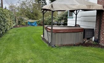 Comfortable one bedroom home with full kitchen and bath, washer dryer sharing a lovely yard and hot tub. Relax by the gas fire pit. Play a game of pool in the game area. Enjoy use of the BBQ and smoker.About pets:No pets allowed.About checkOut:Check out before 11:00 AM.About children:Children allowed: ages 0-17.Pack and play available.About checkIn:Check in after 3:00 PM.About smoking:Smoking is not permitted.About events:No events allowed.