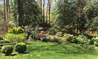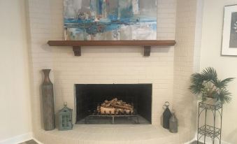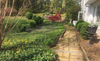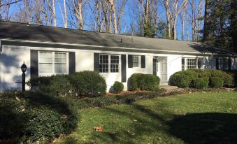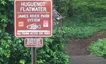 Newly renovated and spacious lower level flat with off-steet parking pad, brick fireplace, and wood plank floors. Large living room opens to kitchen and dining area and has a huge sectional couch with great views through large windows. Kitchen has granite breakfast bar, new stainless steel appliances and tiled splash. Nice corner office space and desk with built-in shelves. Fios internet, 55" TV. Master suite with new queen bed and new hybrid mattress, and 2 closets. Tiled bath with tub shower. Full size washer & dryer in the apartment. Garage parking available for one car. Beautiful garden views. access to patio and grill. Lovely neighborhood for hiking , biking and canoeing / kayaking around the James. Houguenot Flat Water landing is 1.5 miles from house.About pets:No pets allowed.About checkOut:Check out before 11:00 AM.About children:Children allowed: ages 0-17.Large sectional couch that a child could sleep on.About customRules:Parking available in the back of the house. Do not block the driveway access. Garage parking available for an additional fee..About checkIn:Check in after 4:00 PM.About smoking:Smoking is not permitted.About minBookingAge:Minimum age to rent: 21.About events:No events allowed.