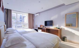 一家三口定的三張床,酒店環境衞生,服務特別好。酒店門口就是公園,臨街,很方便。如果去足球場衹需要穿過橋,走路10來分鐘。