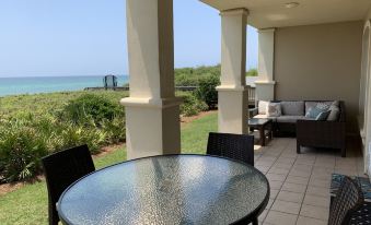 Beautiful large 3 Bedroom/3 Bathroom Gulf Front Condo at the Villas of Sunset Beach in Seacrest. Just a short stroll or bike ride to the town center nestled between Alys & Rosemary Beach where you will enjoy shopping, dining, entertainment, and much more. This condo unit is in the prestigious, private gated community of Sunset Beach. Once through the gated access you will know that you have arrived somewhere special. The brick paved street lined with palm trees lead you to the white sandy beach and the beachfront pool overlooking the emerald coast. This gulf front unit is located in building C on the ground level with amazing ocean views. This unit is steps away from the private community pool (heated October-March) and the beach access to the beautiful white sands.