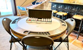 Games: have a good time and lots of laughs playing UNO, Domino Chips, Jenga, Basketball Courtside game featuring two baskets and electric timer. Five Seat Poker Table with set of 500 casino style poker chips and two decks and a Foosball Table.