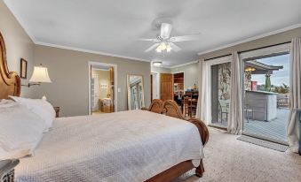 Just off the back deck sits a charming guest cottage — a private open-concept studio with its own kitchen, living area, queen bed, and full bath. Enjoy your own private deck with lake views — the perfect spot for morning coffee or evening sunsets.