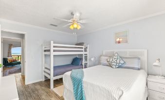 Your Voyage Awaits: Step into a world where the ocean is your backyard. The spacious master bedroom, a serene sanctuary with a king-sized bed, opens to a balcony offering breathtaking ocean views. In the guest room, twin bunk beds and a queen-sized bed promise restful nights after days filled with adventure. TVs equipped with cable are in each bedroom.