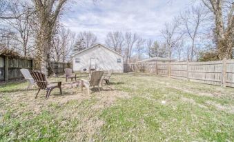 You enter The James Stay directly off of Old Route 66. The driveway is long enough for two cars, a third could park in-front of the deck if needed. You’ll enter the house with the provided door code. You enter into the living room, there is a coat rack behind the door to hang your jacket on, kick your shoes off there if you’d like. To the left is an oversized comfy sectional and to the right is the 65 inch smart TV. The living room flows into the fully equipped kitchen and the dining area. Off the dining area you’ll enter into bedroom number one, complete with a queen size bed and a small closet. There is an extra blanket and pillow in the closet. Walk back through the kitchen area to a small hallway. The bathroom with a full shower, double vanity, fully stocked with shampoo, conditioner, body wash, cotton rounds, Qtips, plenty of towels, hair drier, and 3 rolls of toilet paper is on the left. On the right is bedroom number two with a queen size bed, there are games in a basket up top of the closet along with an extra blanket and pillow. You continue down the hall through the laundry area with a washer, drier, and supplies for a few loads of laundry. Past that is bedroom number three, with a queen size bed and a large closet, with two extra blankets and pillow. There’s also a desk and chair where one can conveniently work from the house if needed. There is a door that exits from the bedroom to the fully fenced in back yard, you may also enter the back yard from the gate by the driveway. In the back yard you’ll find a little fire pit area where you can gather around with family, friends, and pets.