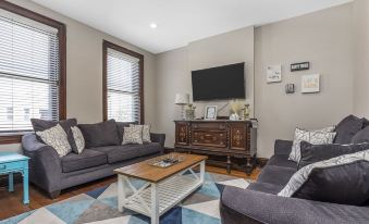 You will love the historic charm of this house and at the same the comfort of the renovated Kitchen and bathrooms. 2 large kitchens with beautiful granite, new appliances on each story. 5 large bedroom equipped with queen-sized beds. 2 Full bathroom with fullsize bathtub and large vanity sink 1 on each floor. Laundry and Dryer in each floor.