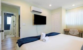 Welcome to this bright and sunny, brand-new, ground-up construction apartment! We thought of everything. The kitchen features beautiful quartz countertops, a dishwasher, an ice maker, an air fryer, and a portable cooktop. Open-concept living and dining, and bedroom furnished with a luxurious king-size bed. Central AC. The bathroom features a rain shower head and tub perfect for bathing your dog! Enjoy a fully fenced-in backyard with tons of room for your pup to run around all day!