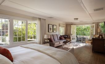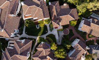 El Encanto offers 92 quintessential California-styled suites and bungalows located throughout the hotels grounds. Sumptuous marble bathrooms are appointed with a separate bath and rain shower and dual wash basins. Entertainment includes a widescreen LCD HDTV with premium channels and a stereo. Also included are a personal safe large enough for a notebook PC - a premium coffee maker - dual 110v-220v voltage and custom linens. Complimentary wireless Internet access - a complimentary newspaper and windows that open are found in all bungalows - and all accommodations are non-smoking.