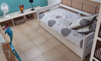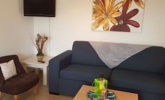 - 2 bedrooms: one with a double bed equipped with a TV, the other with a trundle bed (2 beds 90)