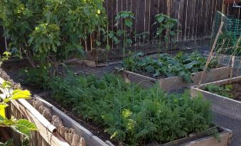 The property is gated and requires a key code to get in. The outdoor space is a work in progress but has several vegetable gardens, many fruit trees and an olive orchard. We produce and sell award winning olive oil from our small orchard. There is also a patio area available for guests to use along with a gas grill, provided upon request. Please note that the outdoor area is a shared space and we do have young children who love to run around the property.