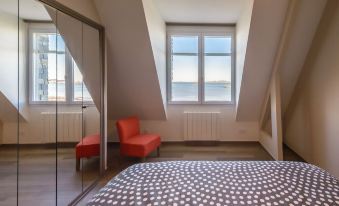 200m² villa for 10 people with exceptional sea views, facing the island of Batz, just 10 meters from the beach. Access for people with reduced mobility (lift). 5 bedrooms, 2 bathrooms, 3 WCs, 2 separate, large fully equipped terrace facing south (deckchairs, barbecue), double garage with electric doors, enclosed garden with gate and digital code access, direct access to the beach, bicycles, billiards, beds will be made upon arrival.