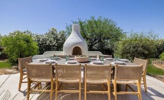 Outdoor Area: Play a game of Bocce Ball, soak in the hot tub, relax by the waterfall feature in the pool, have a drink at the built-in table in the pool, or simply lounge under the shade in our ½ acre backyard. Dine under the stars at the outdoor table while using the outdoor grill and baking some pizza in the adobe style oven.