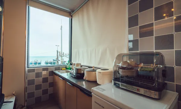 一棟三層的小樓,入住的二樓。在客廳可以看到海,民宿對面就是漁船碼頭。麻將機需要提前預約,老闆後面送過來手動的。廚房有餐具,很方便。是套温馨的房間。