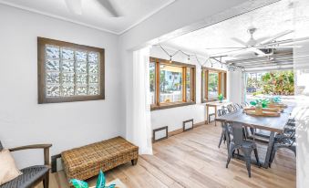 Generously sized 1BR remodeled in 2022 and a uniquely quiet option. While Siesta Key 1BR rentals are exclusively condos, hotels and multifamily units, our property has just two other units and your 1BR doesn't share a wall ceiling or floor with any of its neighbors. Common areas available to you include the ping-pong room, tiki bar, alfresco dining, and usually cornhole. Set on the Southern edge of Siesta Village and surrounded by tropical plants. Just 10-second walk to top beaches, and 3-minute golf cart or trolly ride (10-minute walk) to restaurants and the best fresh oysters, seafood, tropical drinks, ice cream, entertainment, and even gourmet donuts on the island.