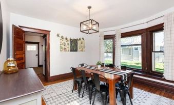 I was looking for a home that would accommodate 9 of us with enough bedrooms and bathrooms to allow for all to get ready to attend a wedding. This home fit the bill! Who would think that an older home near a historic district would have 3 1/2 bathrooms along with 5 bedrooms!
