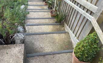Hillgarth House is named as it is a 'house on a hill'. As such Hillgarth Hideaway is approached down a set of steps into the well lit garden of the house.