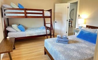 3 bedrooms: 1 bunk bed 1 queen bed 1 king bed and 1 double bed