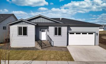 Filled with amenities and hand-picked comforts, this brand new 4 bedroom w/ office space & 2 bath home with fenced backyard, patio, hot tub & fire pit will be sure to delight! Situated on top of rural, big-sky Five Mile Prairie, it is an easy 15 minutes to downtown. The minimalist, decluttered style will be a welcome break from the busyness of daily life. Sit in the cozy family room & relax as you watch a movie or exhale and soak in the hot tub. Make this home your family's next vacation destination.About pets:No pets allowed.About checkOut:Check out before 10:00 AM.About children:Children allowed: ages 0-17.About customRules:-Shoes off inside
