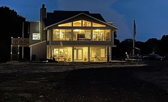 Beautiful large riverfront property located on riverfront marina. Enjoy amazing views and sunsets across the 10 acre yard and views of the Illinois River. Home sits next to popular resturant opening early spring! Summer time offers boat rentals and fishing, enjoy a scenic walk through the quiet neighborhood, or enjoy a picnic on the beach! Home offers a large master bedroom with private deck, a large 4 station shower, amazing living room with million dollar views, large open kitchen, gas fireplace, and 2 smart televisions. Upstairs is loft bedroom with 2 twin beds, and private full bathroom. Downstairs offers a small kitchenette/bar for entertaining with a large 85 inch tv and sound bar for the big game. The two bathrooms down stairs and set up like commercial bathrooms with showers and stalls (a perfect spot for entertaining guests). Downstairs also has two bedrooms, one with a queen bed and one with a trundle twin bed (bed with another bed that slides out from underneath). Back porch is framed in as a 3/4 season room with a large jacuzzi therapy spa. Enjoy watching the stars or the snow while in the spa. Home does sit relatively close to a popular restaurant, great food and drinks, along with several weekend events and live music on weekends. They try to keep the noise levels down and do not stay open late so noise has not been an issue. During summer months boat and jet ski rentals are available, along with fishing pole rentals and bait.About pets:Pets allowed: dogs (limit 2 total).About checkOut:Check out before 10:00 AM.About children:Children allowed: ages 0-17.About checkIn:Check in after 4:00 PM.About smoking:Smoking is not permitted.About minBookingAge:Minimum age to rent: 25.About events:Events allowed: family gatherings and birthday parties.Maximum event attendees: 25,Renter is liable for damages and clean up of event.