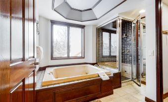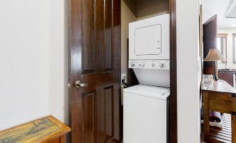 Enjoy the home’s coffered ceilings, brick décor, and a gorgeous balcony view. There are both central air conditioning and ductless units in the bedrooms. The large kitchen is loaded with stainless steel appliances, gadgets, and cookware in addition to an awesome brick-lined range. Use the free WiFi to download a good playlist on your device, and then go over to the Meadows’ newly renovated, spacious fitness center to get in a terrific workout, followed by a cool-down swim in the heated shared pool. The bedrooms are large, each with a fireplace nook. Both baths have jetted tubs and steam showers.