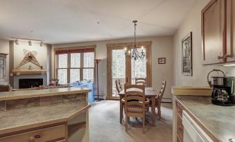 This 1 bedroom 1 bathroom cozy cottage-like condo is perfect for your stay in Keystone. Step into the comfortable living space with high ceilings and great decor. The living room features a gas fireplace, flat screen TV, queen size sleeper sofa, and glass doors. Enjoy cooking delicious meals in the fully equipped kitchen and sit down at the table seating 4 people. The primary bedroom features a queen size bed and flat screen TV. Enjoy this spacious unit that is perfect for couples wanting a romantic hideaway, but also large enough for a family of 4.