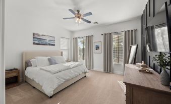 This amazing house is perfect for all kinds of different travelers. The home features 1 king bed, 3 queen beds, and 1 full over full bunk bed, office desk, perfect for families or groups of friends. There are 5 brand new smart TVs in the home 1 65 inch and 4 55 inch for your viewing pleasure. All furniture and mattresses are brand new.