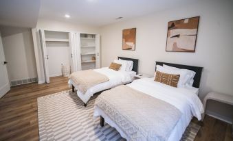 4 bedrooms: 2 single beds 2 queen beds and 1 king bed