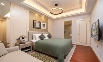 The apartment is located in the core area of Taihu New Town in Wujiang, Suzhou, featuring 120 hotel-style apartments that offer stunning views of the picturesque Taihu Lake, sunset glows, and the sparkling city nightscape of Suzhou Bay. Each room is equipped with a complete set of kitchen facilities and a washer-dryer combo, providing a comfortable and convenient living experience. Within walking distance are the Suzhou Bay Cultural and Arts Center, Suzhou Bay Grand Theatre, and Suzhou Bay Music Fountain. A 30-minute drive can take you to the ancient town of Tongli, Wangshan Scenic Area, and the main urban area of Suzhou.