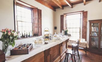 My wife and I stayed here as part of an 8 day driving journey from Port Elizabeth to Cape Town via the Garden Route. Unfortunately our itinerary only allowed for a single nights stay. We wish we had stayed here longer and here's why. On arrival we were greeted by several friendly staff, who were all very welcoming. We were supplied with complimentary scones, butter, cream and jam, and offered some tea, although as it was so hot we chose cold drinks. The homemade scones were amazing. We stayed in the family cottage which was in the grounds a few yards away from the main building. Everything was just perfect - the attention to detail with the little things was wonderful. The cottage was clean and the bed was extremely comfortable. There was also additional facilities, including a sink, a microwave, and a fridge containing water and fresh milk for the tea and coffee provided. The grounds were immaculate and we found it very comfortable relaxing on the spaced out loungers around the pool. Whilst we didn't eat dinner at the restaurant (due to having over eaten for the previous 2+weeks :-) ) the menu did look amazing and if the massive 3 course breakfast is anything to go by, then I'm sure we wouldn't have been disappointed. The quality and quantity of the breakfast was exceptional! This was our first time in SA and when we return again we will 100% be staying for longer at this wonderful accommodation, so that we can make proper use of all the facilities - the bar, the restaurant, the gardens and the pool. Alison, the owner was charming and made us feel very welcome in her home. Can't wait to revisit.