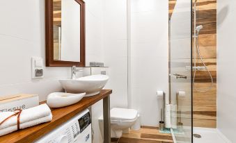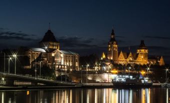 Brand new (commissioned in November 2019), spacious (56 m2) and modern apartment for 4 people. Previously luxury urban residence of Stettiner aristocracy therefore architecture, combining the classic of a 100-year-old building with modernity, interior design and colors of the apartment, refer to the climate of the residence from the turn of the 19th and 20th centuries.. The apartment is located in a historic middle-class house from the end of the 19th century, perfectly situated only 100 m from the central train station and 300 m from the old town at the quiet Zawiszy Square with picturesque view of the river Oder Valley and its islands. At the back of the building there is a free garage. The doors to the staircase and to the apartment are opened electronically . All windows overlook the River Oder . In the apartment there are a free Wi-Fi, wide selection of TV channels and Netflix. living room is linked with seperate kitchen. There are a 49 -inch TV and a comfortable sofa with a large, extendable sleeping space for 2 people i. The kitchen is equipped with all necessary appliances and dishes. Coffee, tea and mineral water are available for the guests free of charge. The bedroom is equipped with a comfortable king-size bed, a spacious wardrobe and a desk; there are also an ironing board, an iron and a drying rack in it. White sheets, pillows and duvets are anti-allergic. The bathroom is equipped with a washing machine, a set of towels and free cosmetics. A baby cot is available on requestAbout pets:No pets allowed.About checkOut:Check out before 11:00 AM.About children:Children allowed: ages 0-17.About checkIn:Check in after 3:00 PM.About smoking:Smoking is not permitted.About minBookingAge:Minimum age to rent: 18.About events:No events allowed.