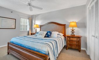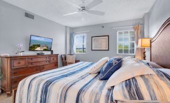 The condo was not the size or location that you portray in your pictures. The primary bedroom had a locked closet and only a rollingrack in the middle of the room. Sink/tub clogged with hair. The smaller bedroom had clogged sink/tub as well. Cabinets were locked. No dresser or TV. - we had to live out of our suitcases for a month!! The TV in Living room was ridiculous/time consuming to operate and the RUKU had to be replaced. The new RUKU wanted all of our personal info when it should have been your info. The washer was so loud we couldn't have it on when we were in the condo. The legs on the chairs were loose and we feared they were going to break off. The patio was a joke - only one person could sit out on it at a time. There were only 2 very thin and poor quality bath towels, 2 hand towels and 2 wash cloths in the small bedroom. No beach towels. The toilet was very slow to flush. No large mixing bowl. We have stayed at many less expensive Florida houses and condos over the past 8 years and this was the smallest and least liked. 4 adults cannot live in it. Especially there was no dining table to eat at or play cards at. It certainly wasn't worth what we paid.